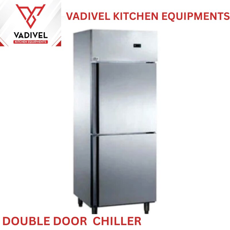 βοΈ Double Door Chiller β Commercial-Grade SS Vertical Chiller for Hotels & Restaurants Our Double Door Chiller is a high-performance, vertical cooling unit designed for commercial kitchens, hotels, bakeries, and restaurants that require reliable cold storage. Built with a durable stainless steel outer body and high-density insulation, it maintains consistent cooling even in hot working environments. The double-door design allows easy access to both compartments, making it ideal for storing dairy, beverages, raw food, desserts, and semi-cooked items. Equipped with a powerful and energy-efficient compressor, this chiller ensures rapid cooling and long-term preservation of food materials. It features digital temperature control, adjustable stainless steel shelves, and self-closing doors with rubber gaskets to prevent cold air loss. Available in static or ventilated (frost-free) models, it is suitable for 24/7 operation in busy kitchens. Standard capacities range from 800 to 1400 liters, and custom models can be manufactured as per client needs. This unit is best suited for commercial establishments that require hygienic, long-lasting, and energy-efficient refrigeration. π Vadivel Kitchen Equipment's, No. 80, 81 Balaji Colony, Padi, Chennai β 600050, India π¬ WhatsApp: [Click to Chat](https://wa.me/919789809001) *(Weβre ready to help!) π§ Email: [Vadivelkitchen.1@gmail.com](mailto:Vadivelkitchen.1@gmail.com) ---