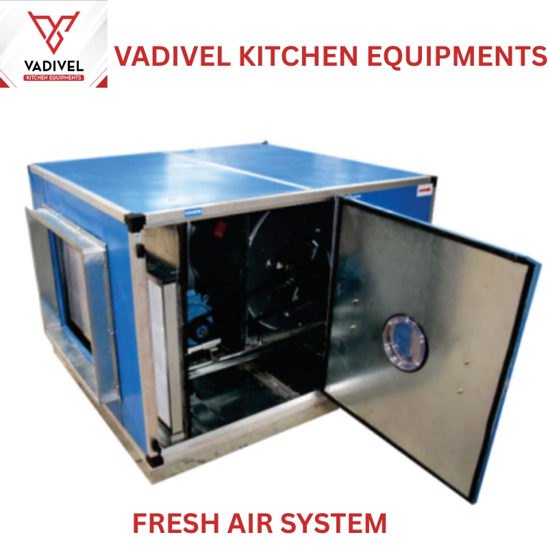 π¨ Fresh Air System β Commercial Kitchen Ventilation for Smoke & Heat Control Our **Fresh Air System** is designed to provide clean, breathable air by supplying **filtered outdoor air** into **commercial kitchens, hotels, restaurants, cloud kitchens**, and **industrial cooking spaces**. This system works alongside **exhaust hoods and ducting** to balance air pressure, control temperature, and remove excess smoke, grease, and steam. Built with **high-efficiency blowers, filters, and SS ducting**, our setup improves **indoor air quality**, enhances **staff comfort**, and supports **HACCP & fire safety compliance**. --- ### β Key Features: * Supplies fresh air to kitchen interiors * Works with hoods, chimneys & exhaust fans * SS or GI ducting with low-noise blowers * Energy-efficient & low maintenance design --- π OUR PRODUCTS: * Commercial kitchen fresh air system * Fresh air ventilation for hotels * Restaurant kitchen air supply system * Fresh air blower with ducting * SS duct fresh air unit * Industrial kitchen ventilation system * Clean air system for food industry * Fresh air intake fan for kitchen * Kitchen smoke control unit Chennai * Hotel exhaust and air supply combo --- π·οΈ PRODUCT HIGHLIGHTS: #FreshAirSystem #CommercialVentilation #KitchenAirSupply #SSFreshAirUnit #RestaurantVentilationSystem #IndustrialKitchenBlower #FreshAirForHotels #SmokeControlSystem #KitchenAirManagement #VadivelKitchenEquipments --- π **Call: 9789809001** π¬ **[WhatsApp: Click to Chat](https://wa.me/919789809001)** π§ **Email: [Vadivelkitchen.1@gmail.com](mailto:Vadivelkitchen.1@gmail.com)**