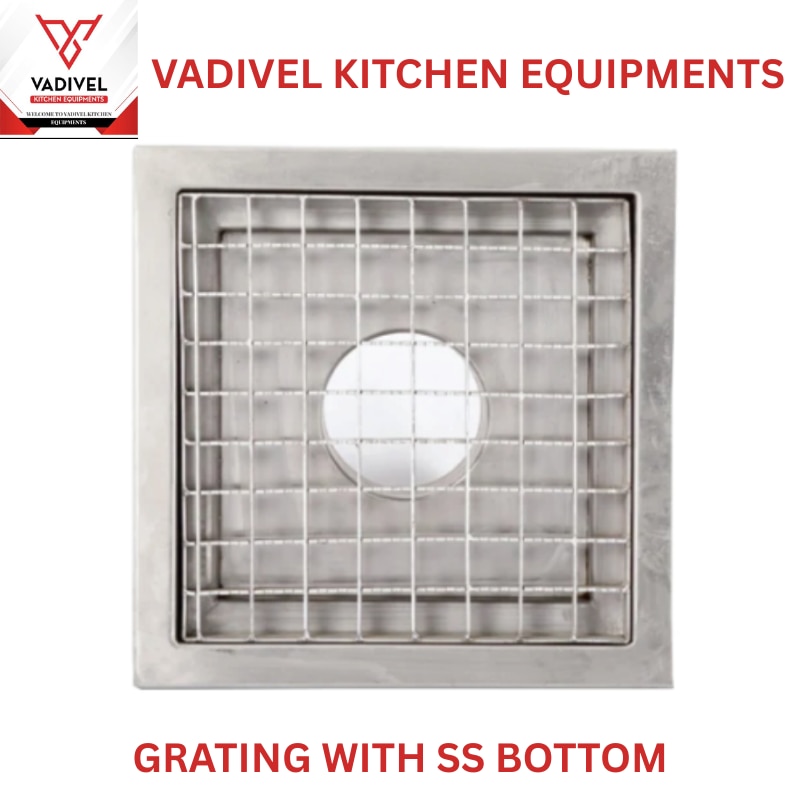 π§± Grating with SS Bottom β Stainless Steel Floor Grate with Base Tray for Drainage & Hygiene Our **Grating with SS Bottom** is a robust **drainage and flooring solution** designed for **commercial kitchens, canteens, food factories, dishwashing zones**, and **wet utility areas**. Built from **SS 304-grade stainless steel**, this unit includes a **solid SS base tray** below the grating β offering enhanced hygiene, controlled drainage, and easier cleaning. Ideal for **heavy-duty use** in food-safe environments, it ensures **non-slip safety**, prevents clogging, and is easy to maintain. Available in **custom sizes and slot styles** to suit your kitchenβs layout. --- ### β Key Features: * SS 304 stainless steel grill with bottom tray * Rust-proof, non-slip & high load capacity * Custom slot design and base depth * Perfect for hotel kitchens, dishwashing areas, and utility drains --- π OUR PRODUCTS: * Stainless steel grating with bottom tray * SS 304 floor grating with base * Hotel kitchen drainage grill * SS utility area grating * Commercial kitchen floor drain solution * Grating with SS tray for water collection * Stainless steel floor trap grill * Food industry floor grating * Drainage cover with SS base * SS grating with under tray Chennai --- ### π·οΈ **Product Hashtags:** #SSGratingWithBottom #StainlessSteelGratingTray #KitchenDrainTray #SSDrainCover #HotelKitchenGrating #UtilityAreaSSGrill #GratingWithBaseTray #FoodFactoryDrainGrill #SSDrainageSolution #VadivelKitchenEquipments --- π **Call: 9789809001** π¬ **[WhatsApp: Click to Chat](https://wa.me/919789809001)** π§ **Email: [Vadivelkitchen.1@gmail.com](mailto:Vadivelkitchen.1@gmail.com)**
