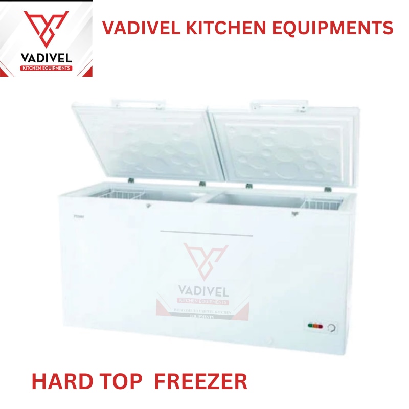 ❄️ **Hard Top Freezer – Heavy-Duty Deep Freezer for Commercial Cold Storage Our Hard Top Freezer is a powerful and energy-efficient deep freezing solution built for hotels, restaurants, supermarkets, butcher shops, bakeries, and cold storage units. Designed to store large volumes of frozen goods, this unit ensures consistent low temperatures and long-term preservation even in tough Indian climates. Crafted with a powder-coated or stainless steel outer body, this freezer features thick PUF insulation, a durable hard-top lid, and a heavy-duty compressor that ensures deep freezing from –18°C to –25°C. It includes an easy-access top-opening lid with a strong hinge mechanism, corrosion-resistant inner liner, and lock & key for product security. Available in single lid and double lid models, this unit offers maximum capacity while minimizing energy loss. This freezer is ideal for storing frozen meat, dairy, ice creams, seafood, frozen vegetables, and pre-packed meals in high-demand commercial settings. Standard capacities range from 300L, 400L, 500L, up to 800L+, and custom requirements can be fulfilled on request. 📍 Vadivel Kitchen Equipment's, No. 80, 81 Balaji Colony, Padi, Chennai – 600050, India 💬 WhatsApp: [Click to Chat](https://wa.me/919789809001) (We’re ready to help!) 📧 Email: [Vadivelkitchen.1@gmail.com](mailto:Vadivelkitchen.1@gmail.com) --- 🔍 Our Products: hard top deep freezer, commercial freezer supplier Chennai, hotel freezer unit, industrial deep freezer Tamil Nadu, hard top freezer 500L, deep freezer for hotels, ice cream freezer, cold storage freezer box