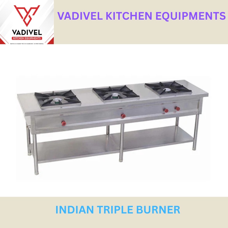The Indian Three Burner Stove is a powerful solution for commercial kitchens, built with high-quality stainless steel (SS 304) for long-lasting durability and hygiene. Ideal for hotels, restaurants, canteens, and catering services, this stove ensures fast, efficient cooking for Indian-style meals. β Key Features: π₯ Three heavy-duty brass burners for high flame output π§Ό SS 304 stainless steel body** β rust-proof & easy maintenance π Compatible with LPG and PNG gas connections π¦Ά Stable, anti-skid legs for safety in busy kitchens π² Spacious design to support large vessels and multitasking π Best commercial stove for restaurants, hotels, and cloud kitchens